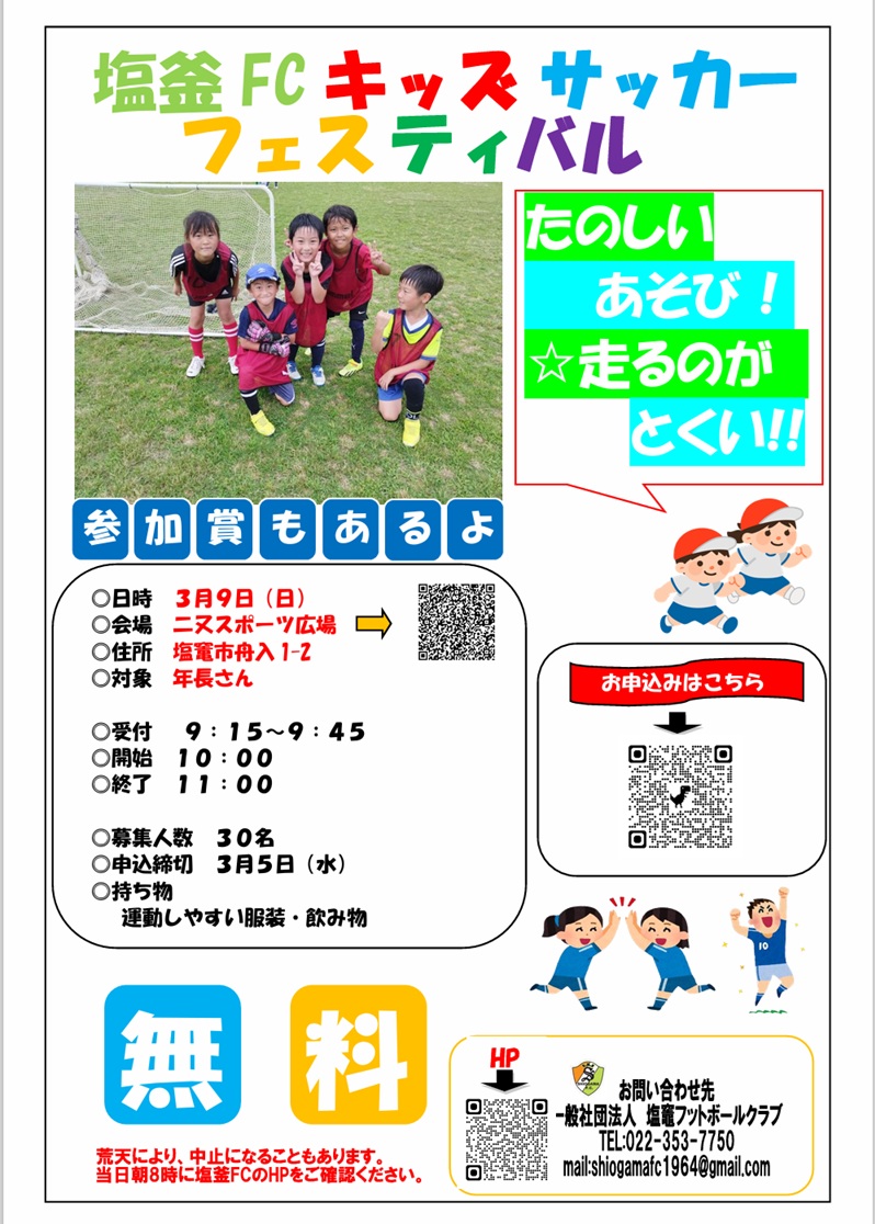 塩釜FC キッズサッカーフェスティバル 参加者募集!!