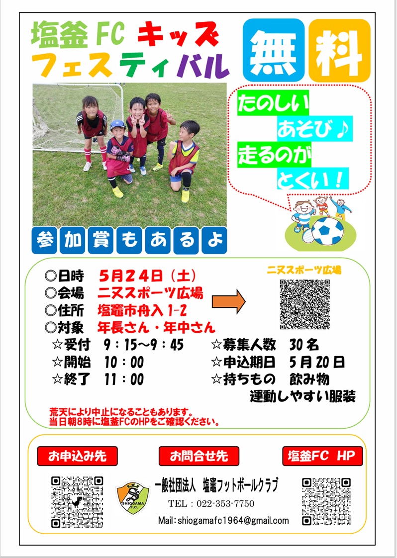 塩釜FC キッズフェスティバル 参加者募集!!