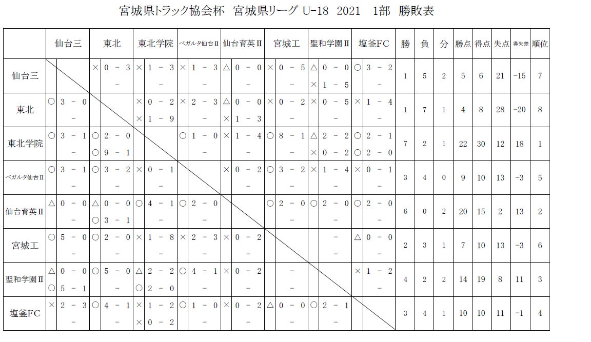 宮城県トラック協会宮城県リーグU-18 1部